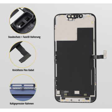 Ist das Display von Ihrem IPhone 13 Pro Max brüchig? Sind unschöne Kratzer zu sehen? Verleihen Sie Ihrem IPhone 13 Pro Max ein komplett neues Leben, indem Sie sich in unserem Online-Shop ein brandneues Display in Spitzenqualität kaufen. Die Reparatur ist auch für einen Nichtfachmann in kürzester Zeit erledigt. Erwerben Sie ein Apple iPhone Display für das IPhone 13 Pro Max und legen Sie sofort los. Die Reparaturkosten eines IPhone 13 Pro Max Displays sind um ein Vielfaches niedriger als der Kauf eines neuen iPhones. Somit leisten auch Sie einen Beitrag zum Schutz unserer Umwelt. Die Passgenauigkeit unserer Apple iPhone Displays sind auf höchstem Niveau, sodass sich unsere Displays perfekt an Ihr IPhone 13 Pro Max anschmiegen.