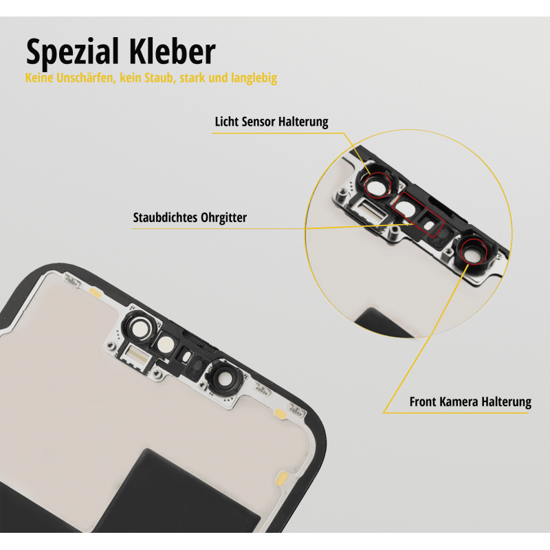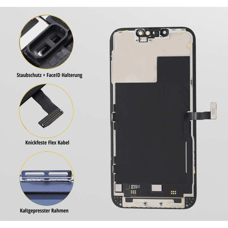 Ist das Display von Ihrem IPhone 14 Plus brüchig? Sind unschöne Kratzer zu sehen? Verleihen Sie Ihrem IPhone 14 Plus ein komplett neues Leben, indem Sie sich in unserem Online-Shop ein brandneues Display in Spitzenqualität kaufen. Die Reparatur ist auch für einen Nichtfachmann in kürzester Zeit erledigt. Erwerben Sie ein Apple iPhone Display für das IPhone 14 Plus und legen Sie sofort los. Die Reparaturkosten eines IPhone 14 Plus Displays sind um ein Vielfaches niedriger als der Kauf eines neuen iPhones. Somit leisten auch Sie einen Beitrag zum Schutz unserer Umwelt. Die Passgenauigkeit unserer Apple iPhone Displays sind auf höchstem Niveau, sodass sich unsere Displays perfekt an Ihr IPhone 14 Plus anschmiegen.